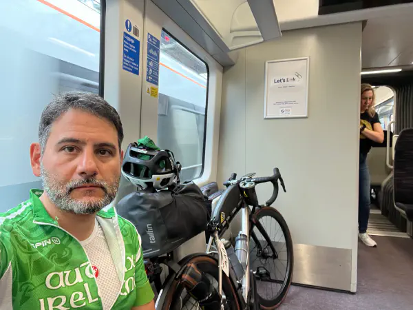 Since I couldn’t ride my bike, Myles (the hero volunteer) drove us to Grimsby in his van. From there, the real adventure began. Picture this: Giovanni and I, standing shoulder-to-shoulder on packed trains from Grimsby to London King’s Cross, bikes awkwardly wedged into whatever space we could find. Transporting bikes on UK trains? Just as “fun” as in Ireland—by which I mean, a logistical nightmare. The train to London was a bit better and had a cage, for only 4 bikes though…